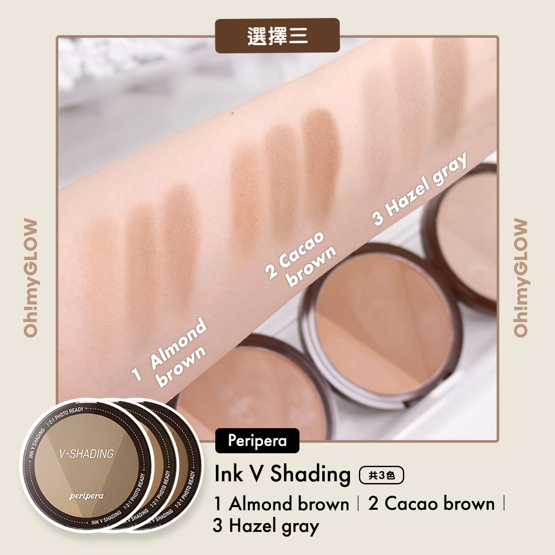 01 Almond Brown (淺暖色調)|02 Cacao Brown (深暖色調)|03 Hazel Gray (冷色調)