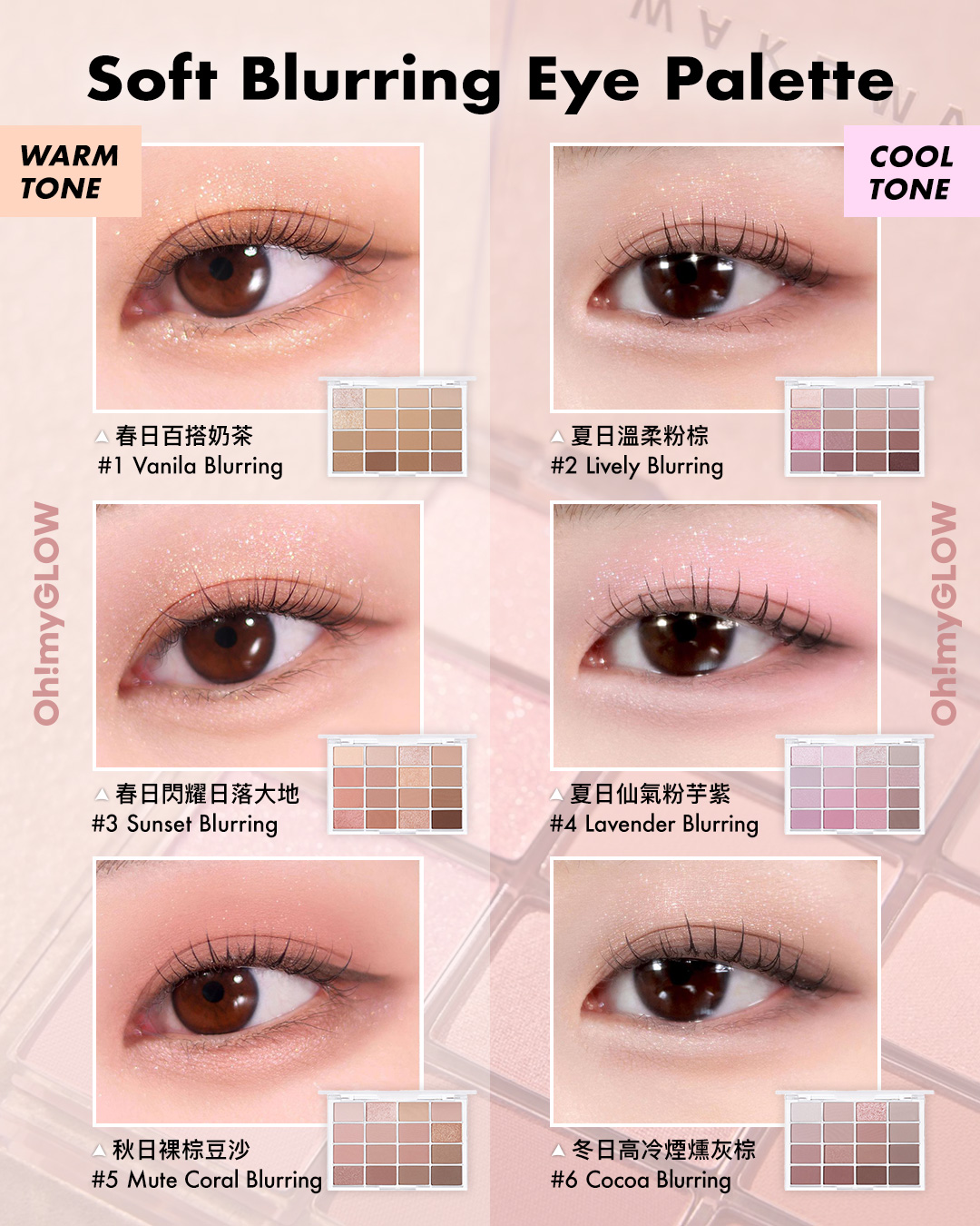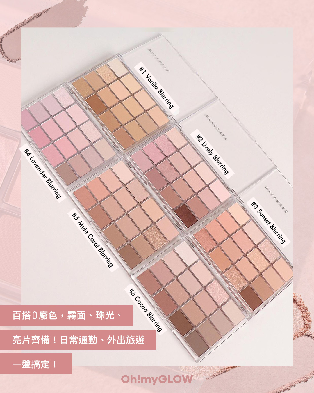 wakemake 一次過改良6盤皇牌Soft Blurring Palette,由12色變成16色~包裝上也變輕變薄,更便攜!