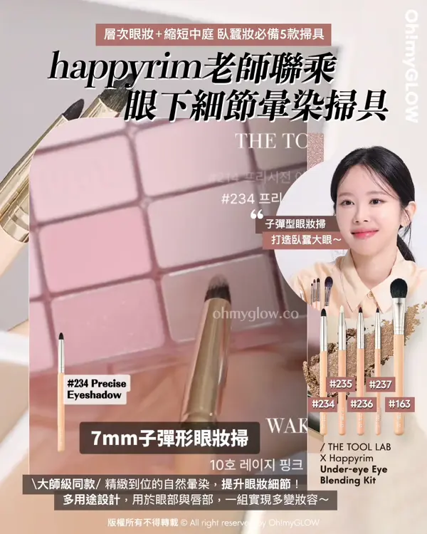 🔹 Happyrim老師聯乘同款,以眼妝為主的掃具套裝,一套5支