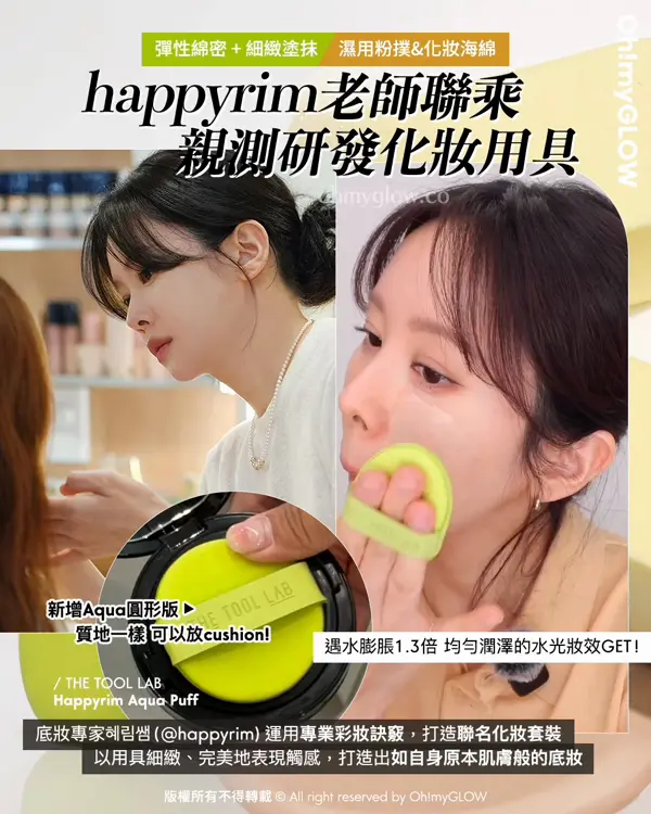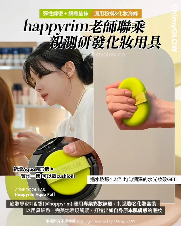 ➤ 💚 Happyrim Aqua Puff(濕用)水光妝感 BEST! 由Happyrim合作研發,老師私下同佢嘅化妝室都勁用佢🤩 !