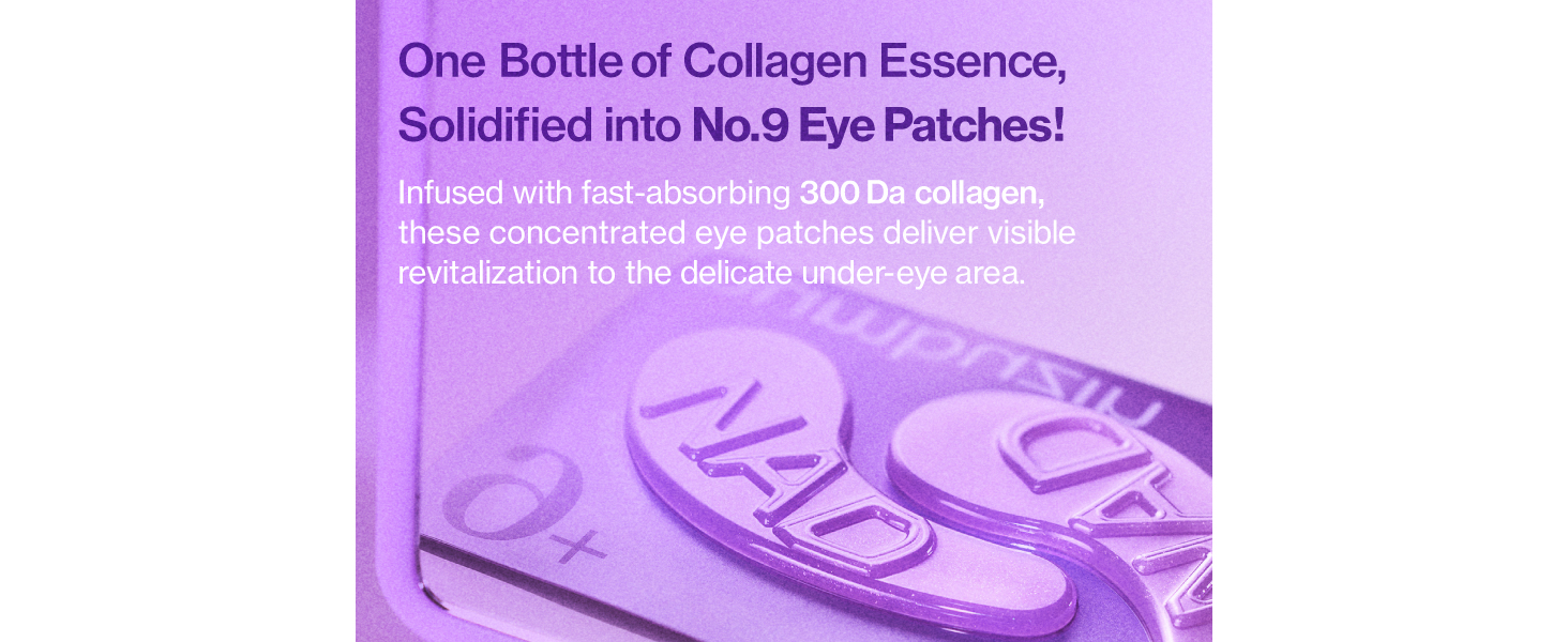 - 集結整瓶膠原蛋白精華:一瓶膠原蛋白精華,濃縮凝固成 No.9 眼膜貼,精萃直達脆弱眼周。