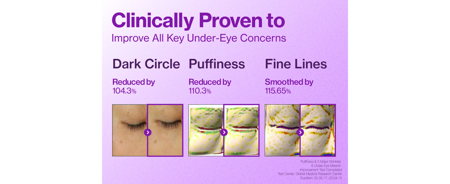 - 提亮眼圈,撫平細紋:亮白黑眼圈,撫平眼袋,填滿細紋,讓雙眼年輕有神。