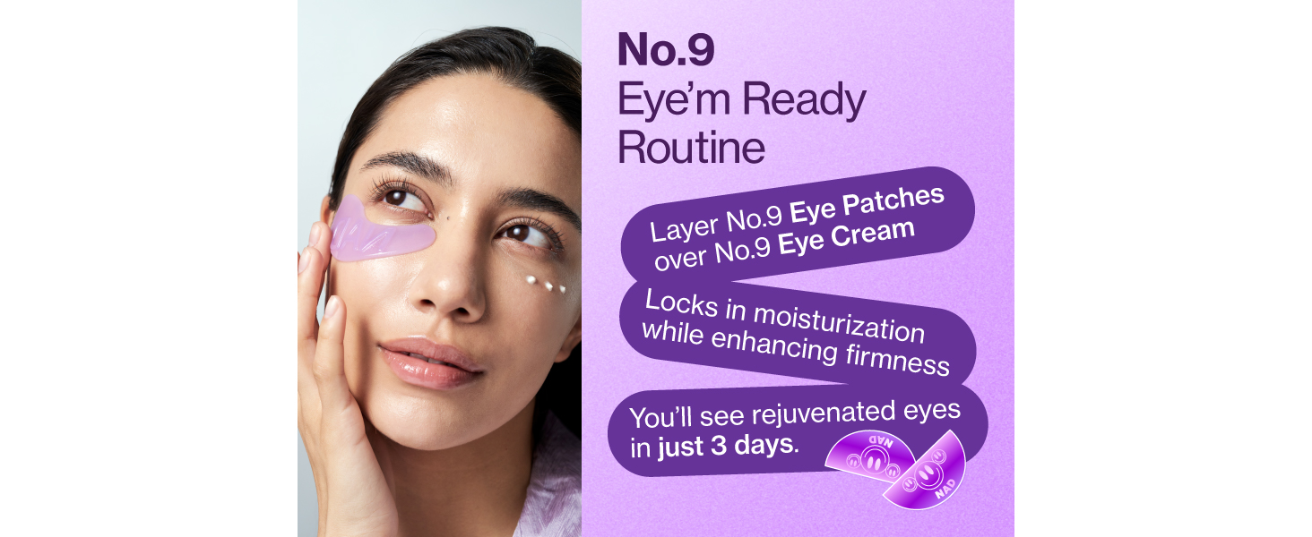 - 完美配搭:疊加 No.9 眼霜使用,極致鎖水並增強緊緻感。