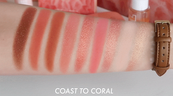 珊瑚色9色眼影盤,包括5款啞光色調及4款金屬色調,粉質細滑,易推顯色。以珊瑚為靈感搭配出的溫柔珊瑚棕,十分日常百搭。