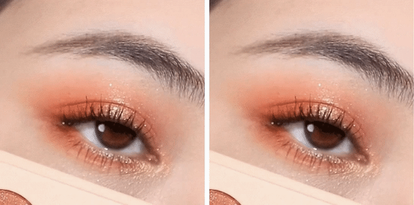 在日常妝容裡也可以輕鬆使用珊瑚色,粉橙色和金色閃粉的配搭讓人想起夕陽美景。這種配搭不顯雙眼浮腫,更顯年輕活力。