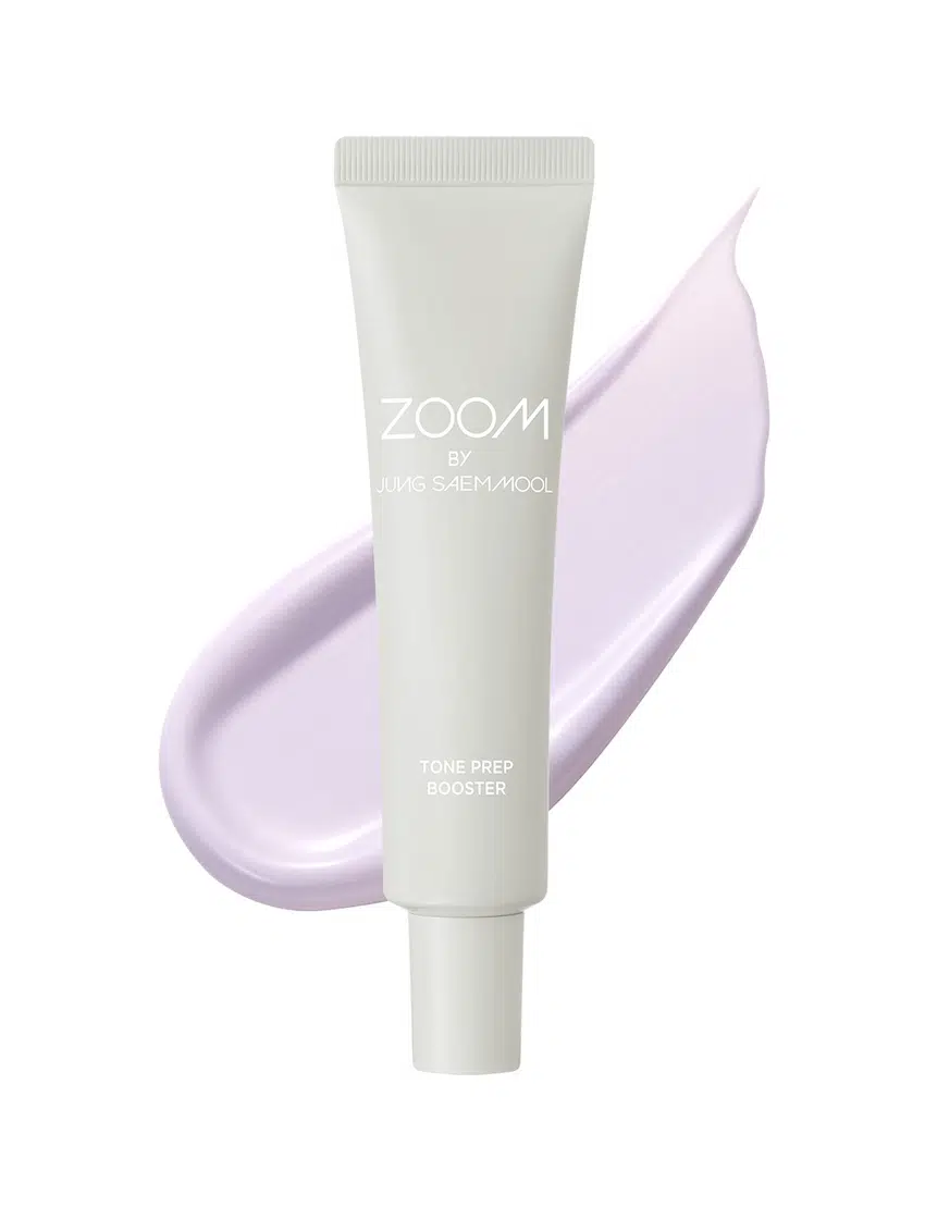 ZOOM by Jung SaemMool — Tone Prep Booster 一款妝前「紫色提亮底霜」,以一層薄薄的薰衣紫色調中和偏黃、暗沈的膚色,打造清透明亮的妝前底層,提升後續彩妝顯色與服貼度,並同時控制多餘油光、提供內層保濕與舒緩呵護,適合追求整體妝感提亮與持妝效果的使用者。