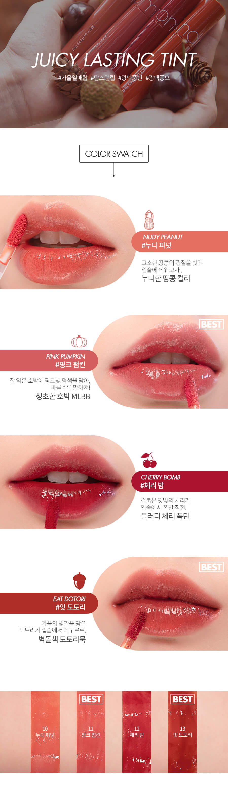 Rom&nd Autumn Fruit 系列,#10-13 4色選擇:
