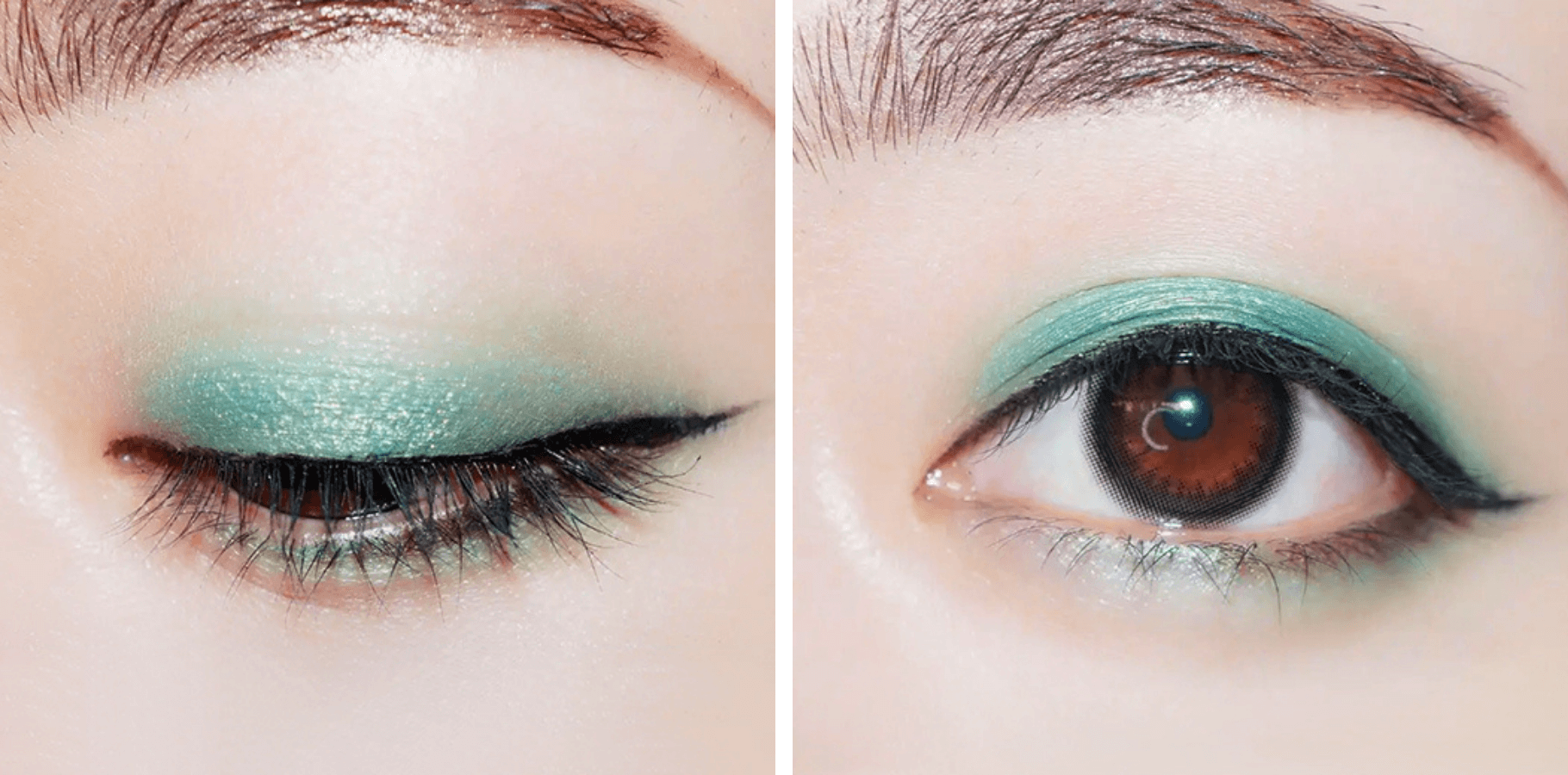 綠色的眼妝看上十分清新,從上而下的漸變感也為雙眼添加了層次,雙眼並不會顯浮腫。