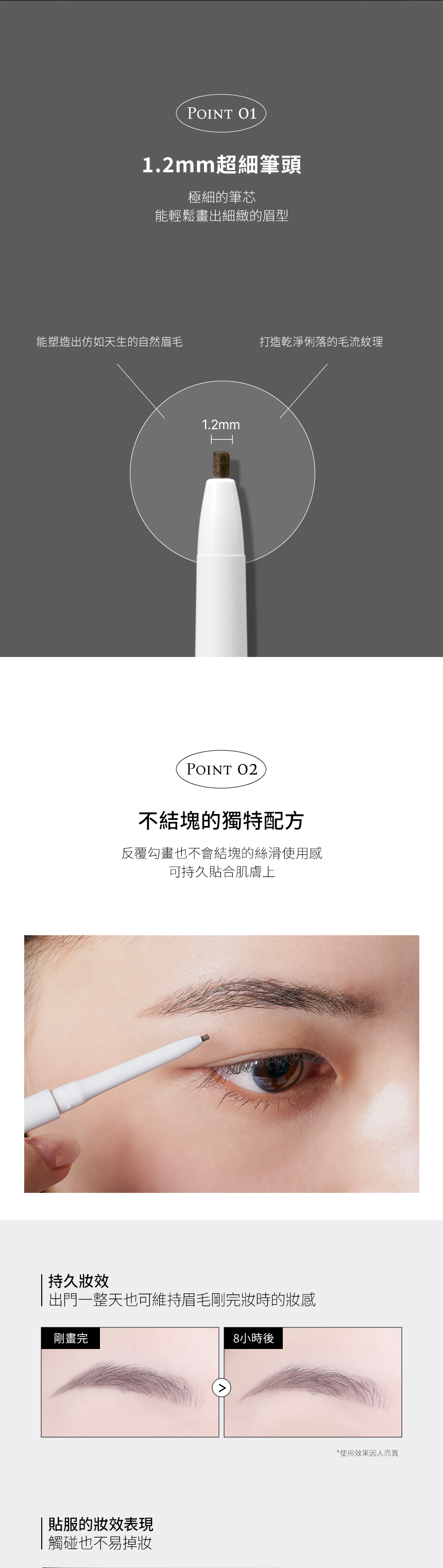 而呢支1.2mm極幼眉筆:比一般眼線還幼細,主打描繪出精緻纖細毛流感!