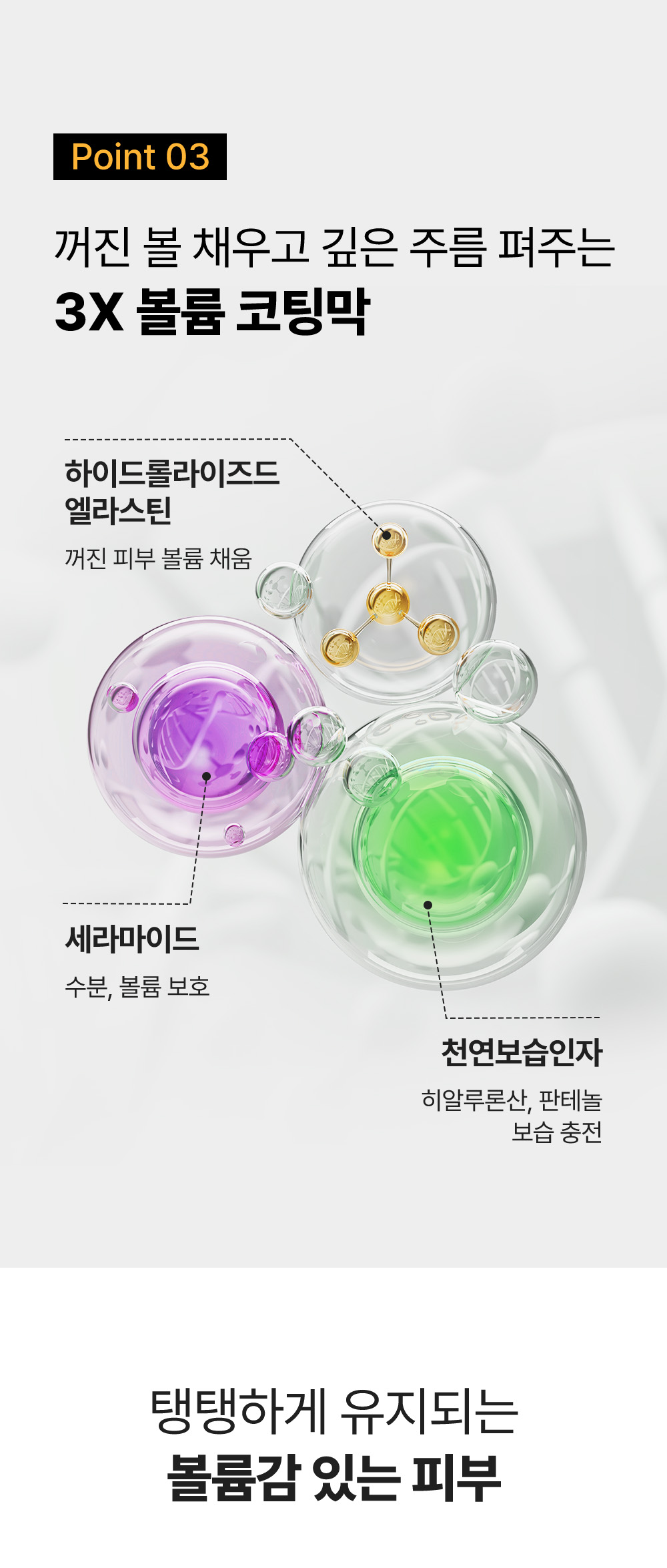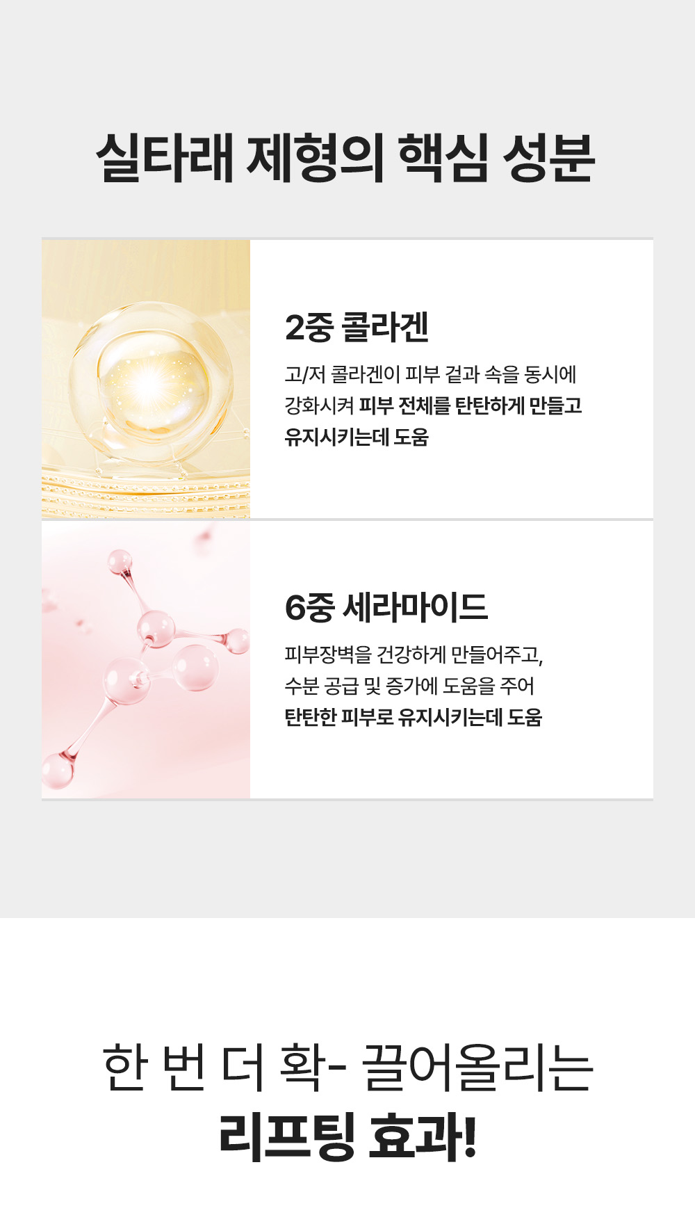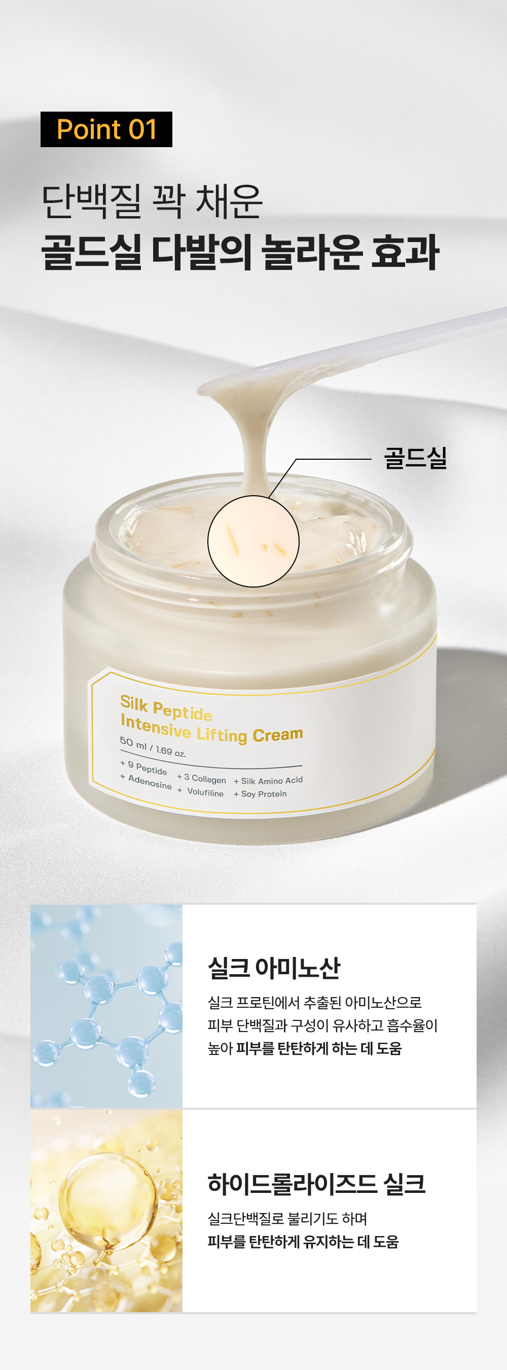 絲蛋白胜肽──絲蛋白、多肽複合成分、高級膠原成分與Volufiline配合,締造強效提拉!