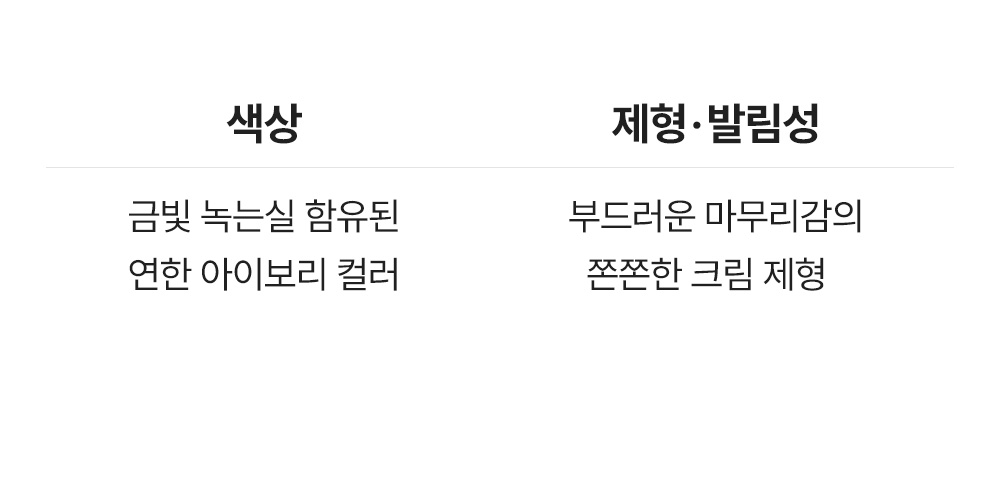 - 皮膚溫度融化後,服貼且自然亮澤