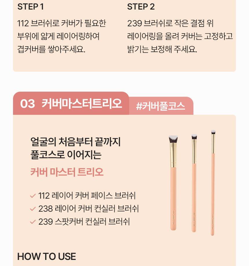 - 238 Layer Cover Concealer Brush:專為局部遮瑕、斑點與細小部位設計的重點遮瑕刷(Spot cover concealer brush)。